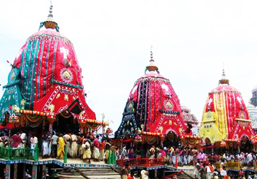 Lord Jagannth along with His Brother Balabhadra and Sister Subhadra are carried in a royal procession to the charriot by devotees..